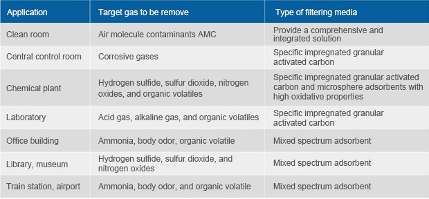 -With various types, effectively remove gas-phase chemical contaminants (airborne Molecular Contamination (AMC)) in the clean room and relevant controlled environment.
